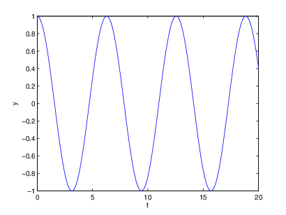 A trickier problem is the "windowing" problem, also known as spectral leakage. [Note: I really recommend reading the linked wikipedia article at some point, as it is a very well-written and insightful treatment of this issue.] The problem can be summarized intuitively as follows: nearby frequencies will "bleed into" each other, and the easiest way to reduce this phenomenon is to increase your sample time. Another intuitive statement to this effect is that the extent to which you can distinguish between two nearby frequencies is roughly proportional to the number of full periods that you observe of their difference frequency. I will make both of these statements precise below. First, though, let me convince you that spectral leakage is relevant by showing you what the Fourier transform of a periodic signal looks like when the period doesn't fit into the sampling window. The first image below is a plot of y=cos(t), and the second is a snapshot of part of the Fourier transform (blue is real part, green is imaginary part). Note that the plot linearly interpolates between sample points. Also note that the sampling frequency was 100Hz, although that is almost completely irrelevant.