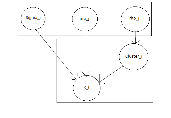 From this, once we pick probability distributions over the $\Sigma$, $\mu$, and $\rho$, we can calculate the posterior probability of a given set of clusters as
